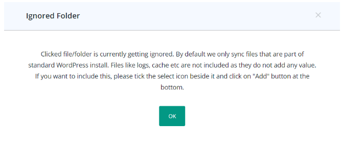 Step 5: WPRemote will tell you about why the folder is being ignored. Click on OK.