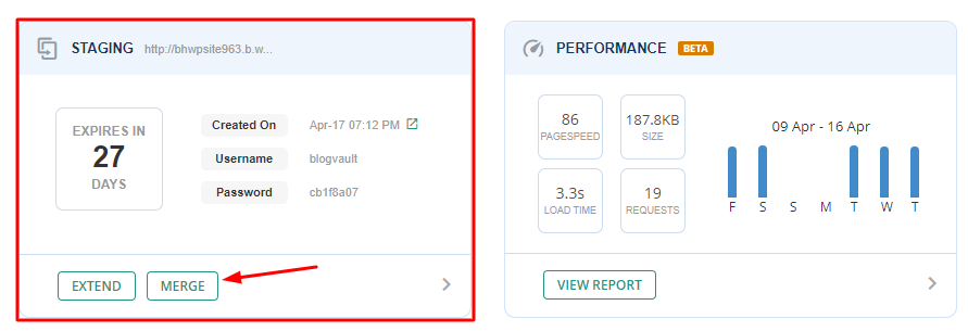 Step 1: On the WPRemote Dashboard, under the Staging section, you will find the Merge option. Click this to begin the Merging process.