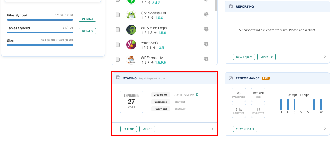 Step 10: Click the Extend Expiry button when you need to use your staging site for a longer duration. Note that the staging site can be extended from 28 days for up to 56 days.