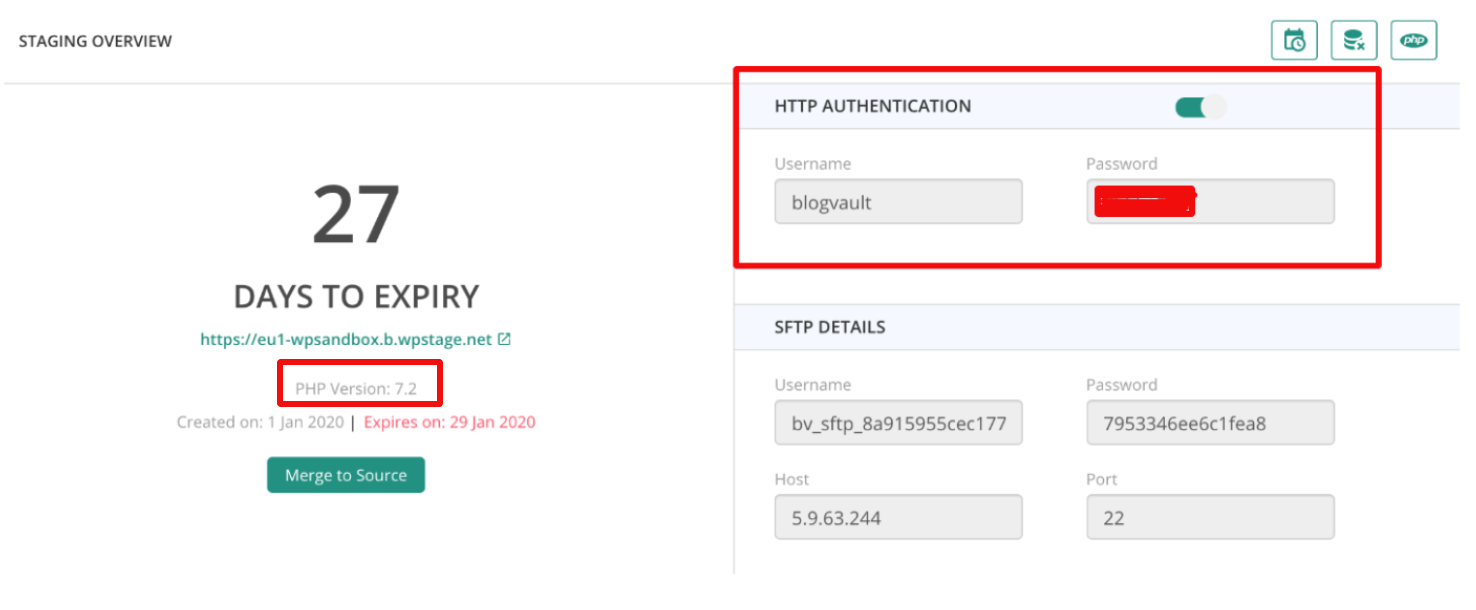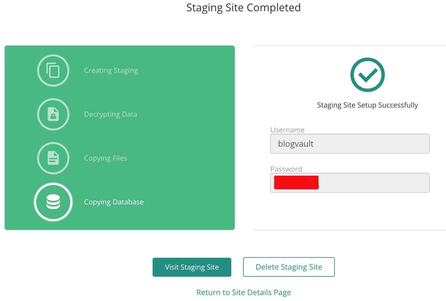 Step 6: On completion, keep a note of the username and password provided. This will be used to access the Staging site.