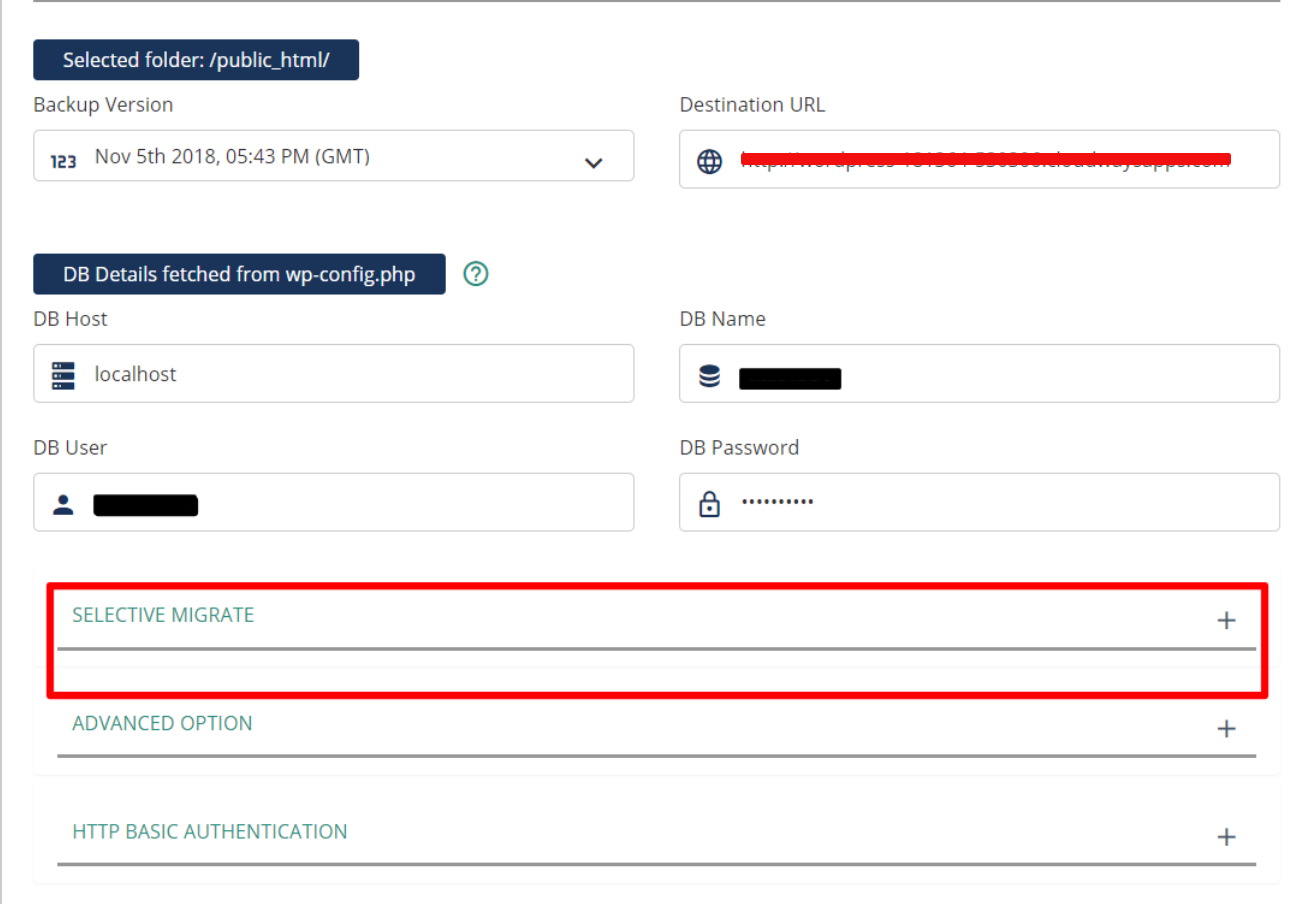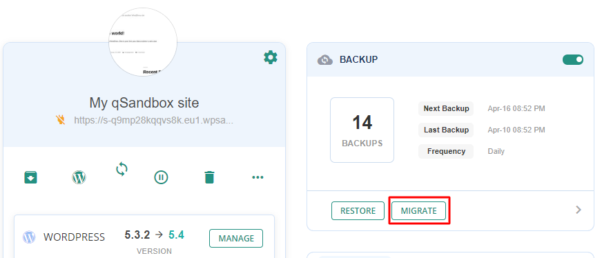 Step 3: It'll take you to the Site Detail page. On this page, go to the backup section and click on the Migrate button.