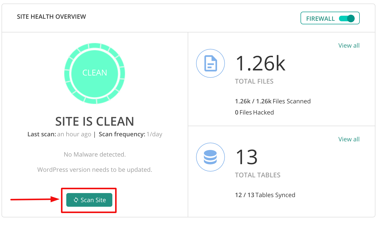 Step 3: Click on the Scan Site and your website will be scanned. After the process is complete, the plugin will tell you whether your website is clean or hacked.