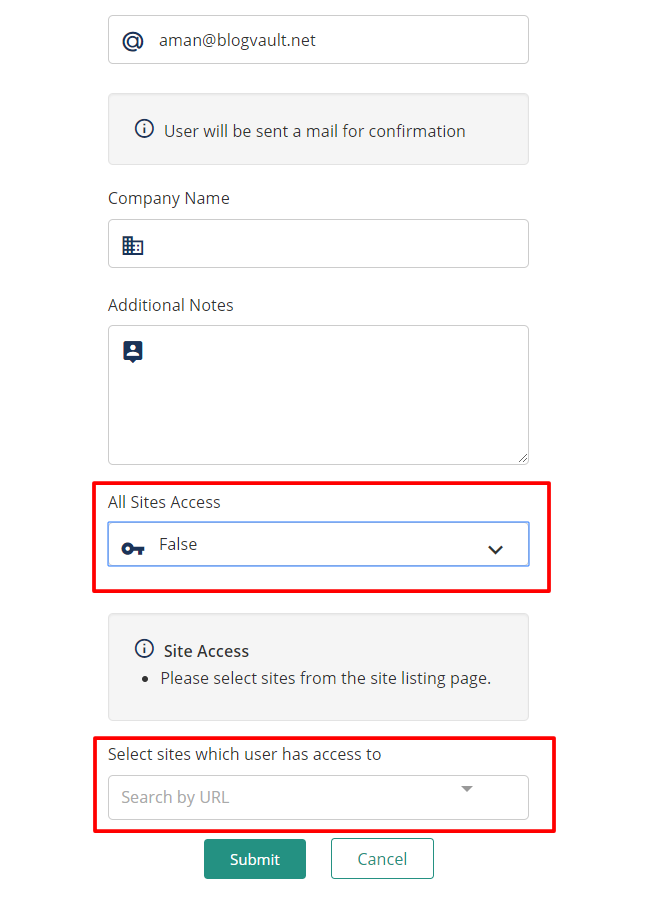 Step 4: You can modify the team member their role, name, email address, company name, and give multiple site access if required.