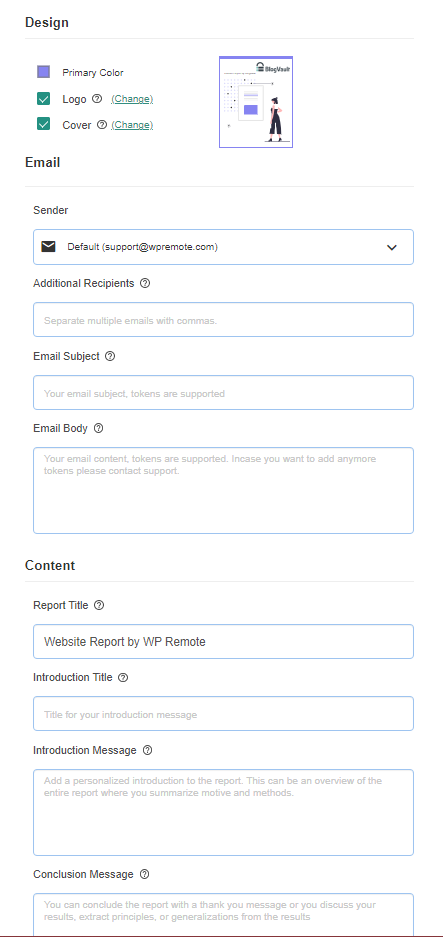 - Add a custom logo to replace the WPRemote Logo.
